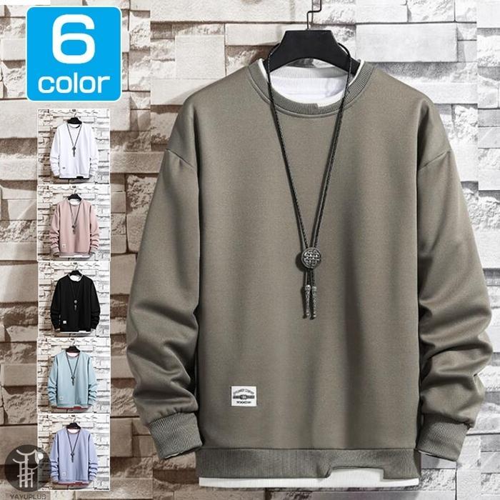大人気 トレーナー レイヤード風Tシャツ 重ね着風 メンズ トップス 切り替え スウェット オシャレ プルオーバー 長袖 クルーネック 春服 秋服 新作