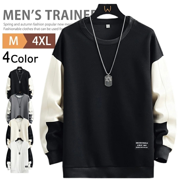 スウェット トレーナー メンズ プルオーバー 長袖 切り替え カジュアル クルーネック ジャージ 上 メンズトレーナー ロンT おしゃれ トップス スポーツ スウェットトレーナー インナー ルームウェ