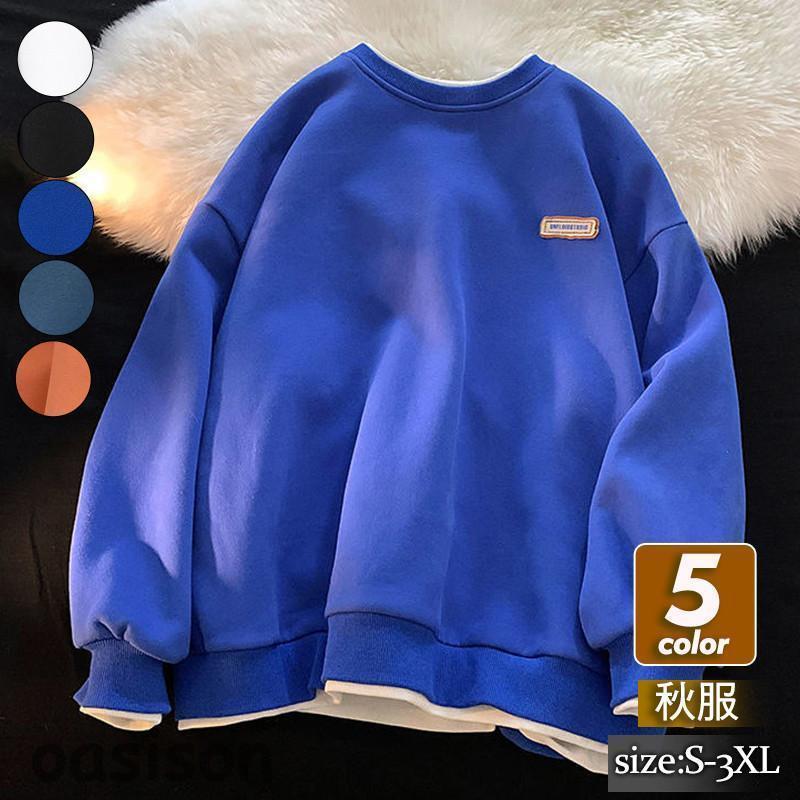 人気沸騰新柄追加 トレーナー メンズ プルオーバー フェイクレイヤード クルーネック スウェット 長袖 ゆったり 上着 カジュアル スポーツ 学生 春秋 おしゃれ 新作