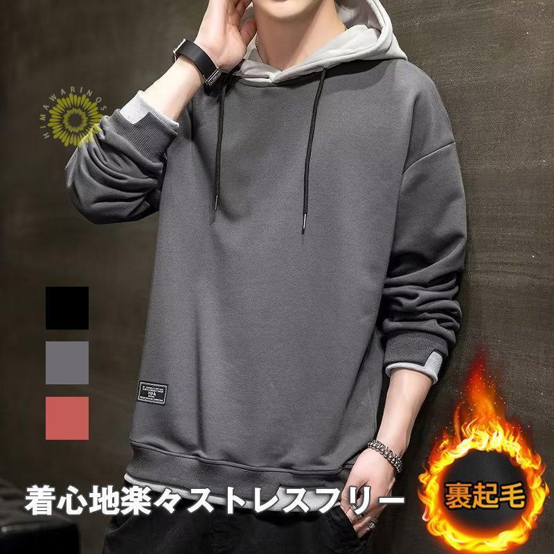 パーカー メンズ 裏起毛 フード付き 長袖 アウター ゆったり カジュアル 無地 シンプル 大きい 着痩せ 防寒 暖か 秋冬 おしゃれ 韓国風