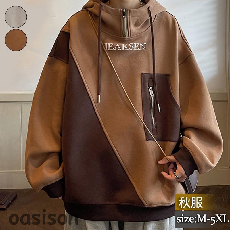 新入庫 パーカー メンズ アウター プルオーバー フェイクレイヤード スウェット トップス フード付き 長袖 ゆったり 秋冬 シンプル 無地 防風 かっこいい