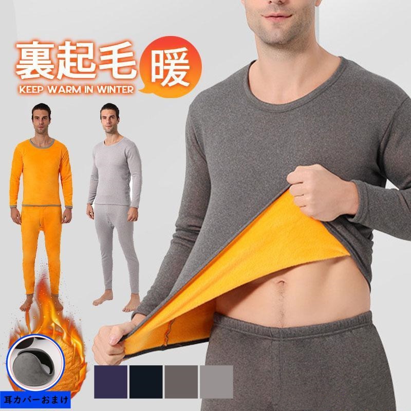 インナーセット メンズ 上下セット ヒートテック 防寒 裏起毛 ルームウエア 裏ボア ストレッチ あったか 下着 肌着 冬用 暖かい 冷え性 発熱