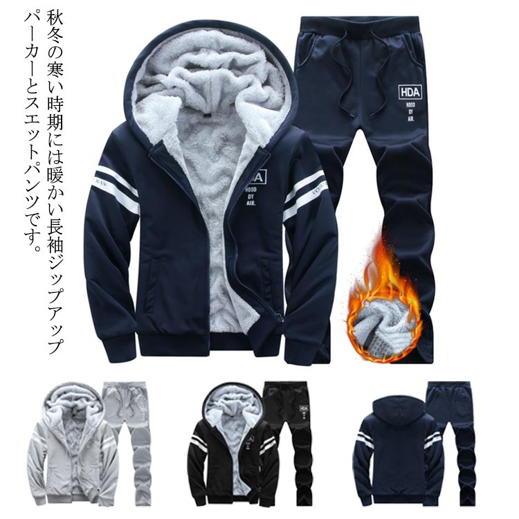 ジャージ メンズ 上下 スウェット上下 セットアップ 裏起毛 裏ボア ゴルフウェア 上下セット ジャケット トレーニングウェア 秋 冬 スポーツウェア パーカー