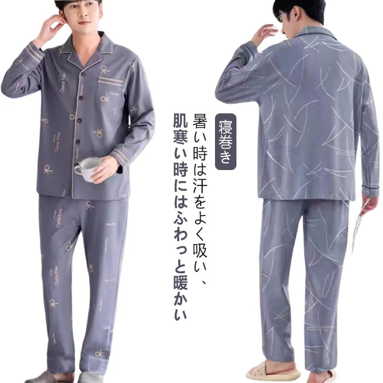 寝巻き パジャマ メンズ 長袖 前開き シャツ ルームウェア 夏向き 無地 ストライプ テーラー襟 綿 テーラード 父の日 プレゼント 紳士 男性 春 男の子 旦那 チェック 総柄 おそろい 男性 ナ