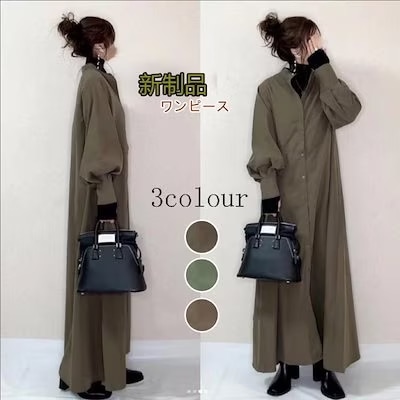 日系 新商品 長袖 切り替え ワンピース秋冬 ロングワンピース 大きめサイズ シャツワンピース ゆったり ワンピース着痩せ レディースファッション 韓国ファッション 6