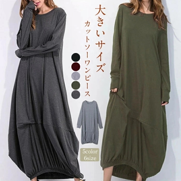ロングワンピース レディース マキシ丈 ワンピ カットソーワンピース 長袖 マキシワンピース 大きいサイズ ゆったり 体型カバー 大人 着痩せ 30代 春 秋 部屋着 ルームウェア