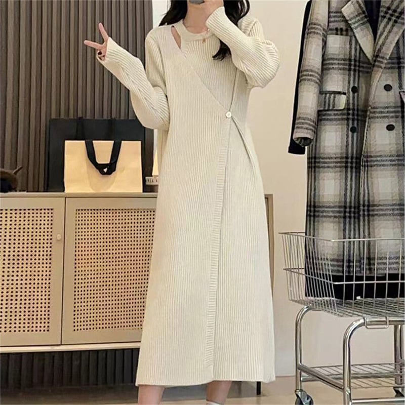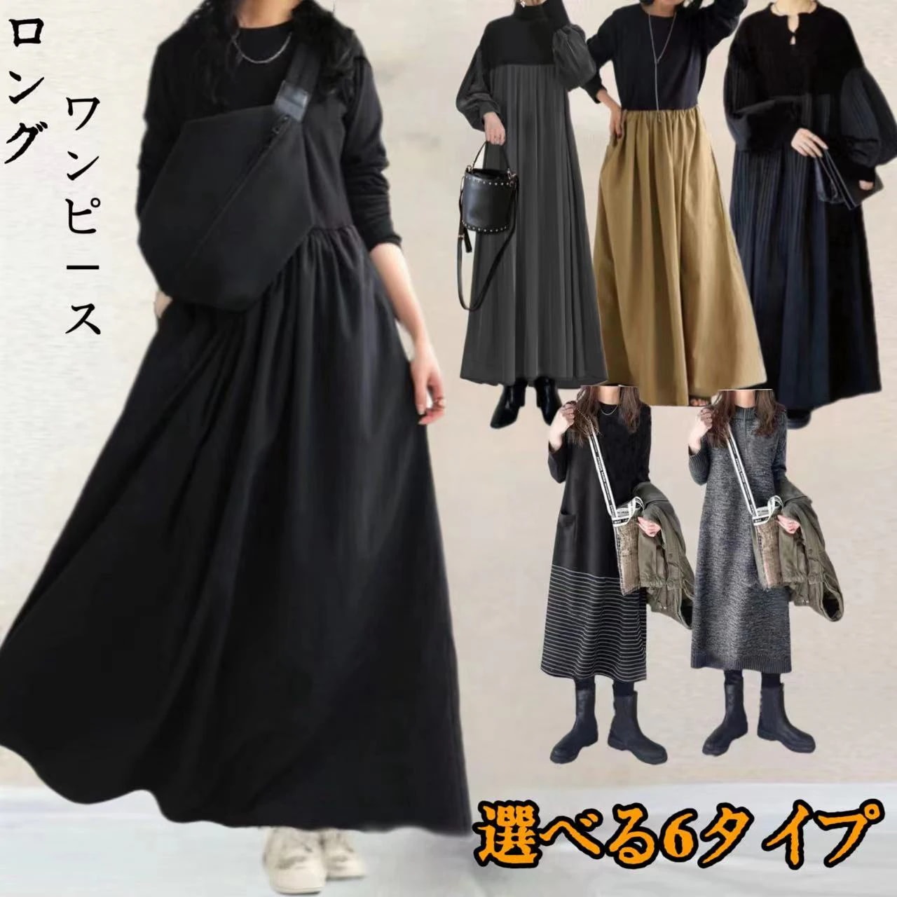 秋服2024年新作女性初秋コートボトムインナーロングスカート早春春ニットセーターワンピース 長袖ロング マキシ丈ワンピ