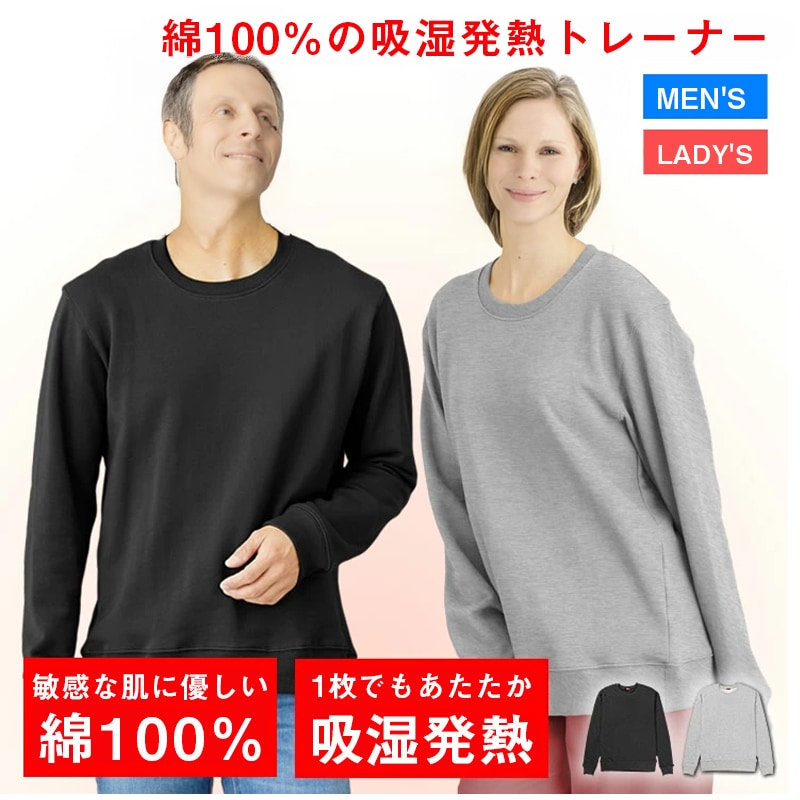 メンズ レディース スウェット Tシャツ カットソー 長袖 無地 ルームウェア パジャマ 綿100% あったか 温かい 吸湿発熱 敏感肌に優しい ゆったりサイズ 秋冬用 快適な肌触り