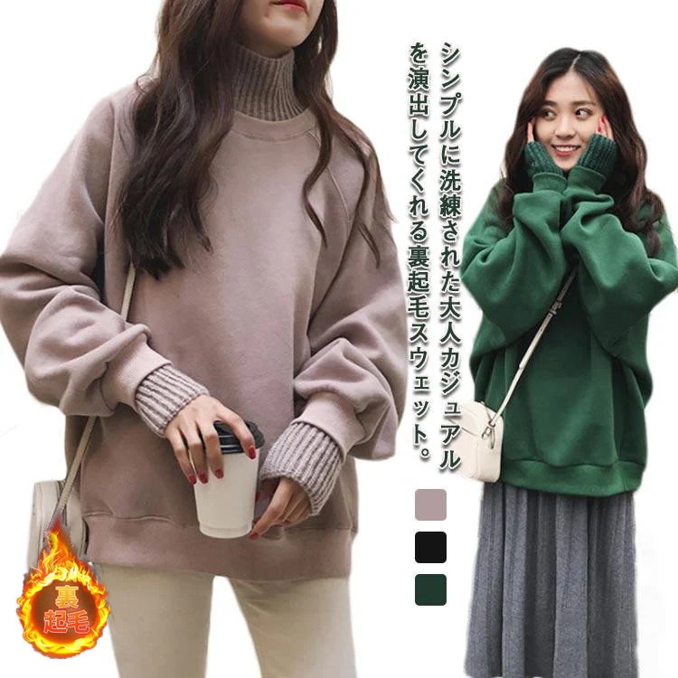 裏起毛 スウェット トレーナー ハイネック ルオーバー リブ 切り替え リブ袖 スタンドカラー 起毛 あったか 防寒 厚手 春 秋 冬 チュ