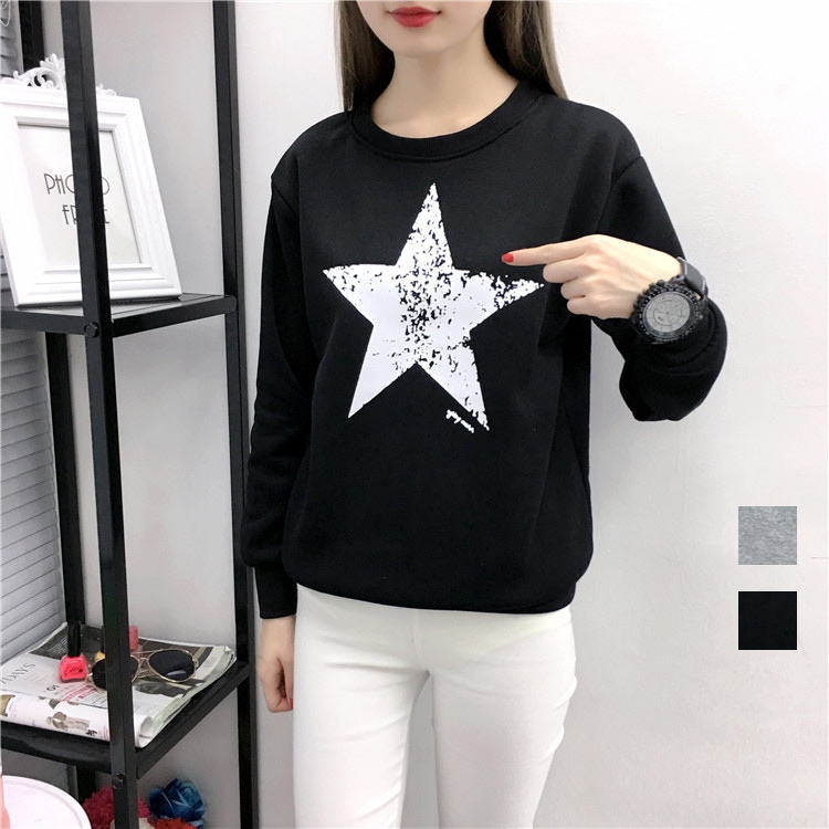 NMIXX服ペ真率着用衛服ゆったり花灰色プリントラウンドネックにスエード厚手薄手春秋冬服 Tシャツ カットソー