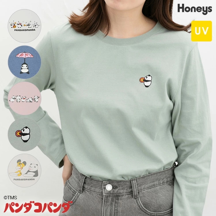 Honeys パンダコパンダ/長袖T トップス カットソー 長袖 コットン 綿 UVカット パンダコパンダ Tシャツ カットソー