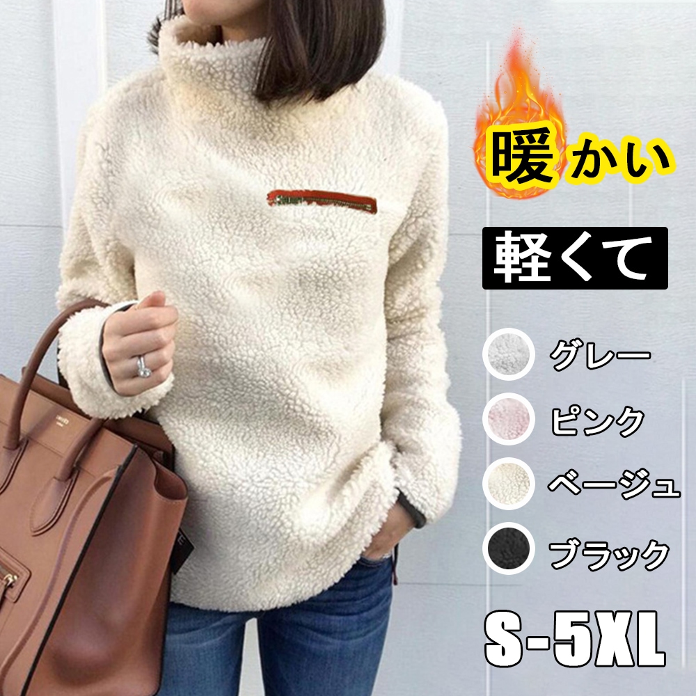 軽量で 暖かい ふわふわボアフリース パーカー 暖かい 大きいサイズ 秋 冬モコモコ 韓国 レディース 黒 コート Tシャツ カットソー