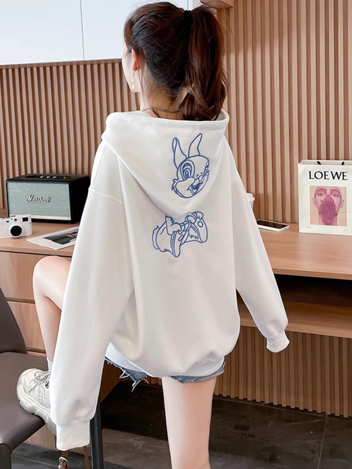 キャラクター刺繍うさぎ帽子パーカーレディース秋冬新作かわいい風デザイン感たっぷりのトップス Tシャツ カットソー