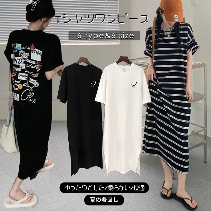ワンピース レディース 韓国ファッションパフスリーブTシャツ ロングワンピース 夏 半袖 着痩せ ゆったり可愛いデザインTシャツ