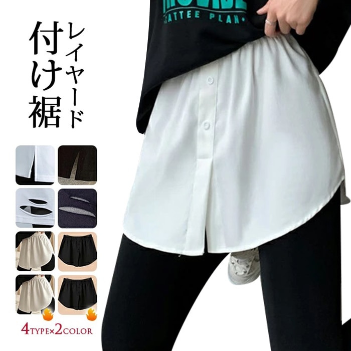 レイヤードトップス フェイクレイヤード 付け裾 レディース ミニ レイヤード トレーナー カットソー 付け裾 スカート インナー 腹巻き 黒 Tシャツ ウェストゴム ラウンド 白 着け裾 大きいサイ