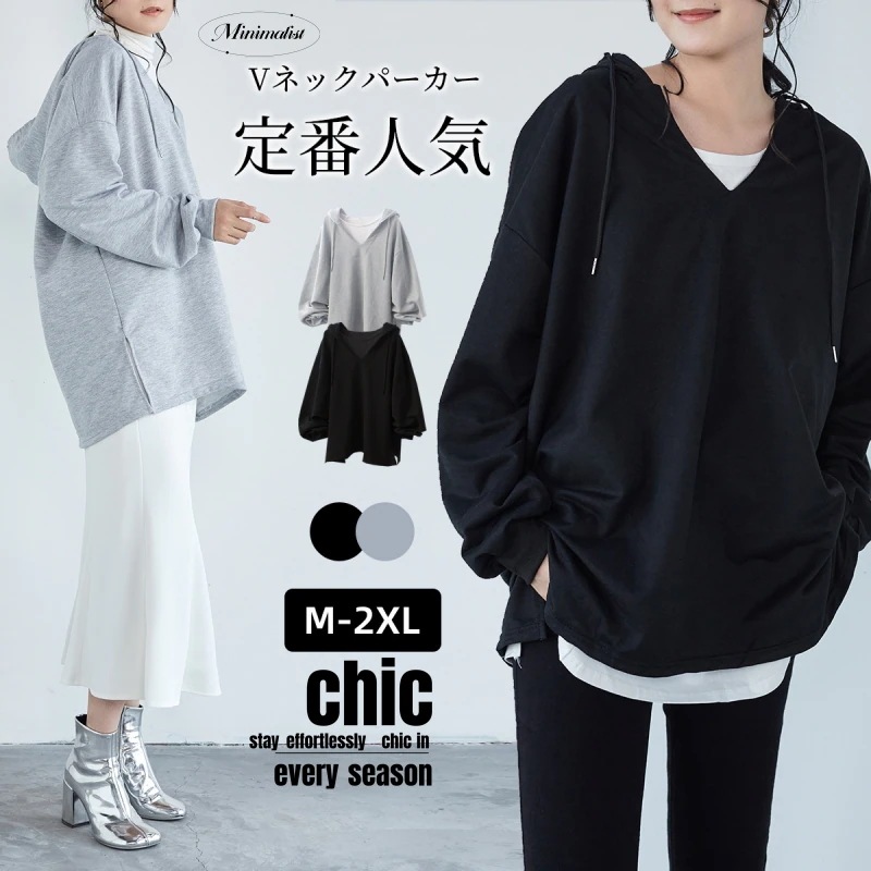 Tシャツカットソー シフォンブラウス 2color 新作 初春 長袖 スウエットパーカー レディース ゆったり Vネック スリット チュニック カジュアル ゆったり 無地 Tシャツ ロングTシャツ