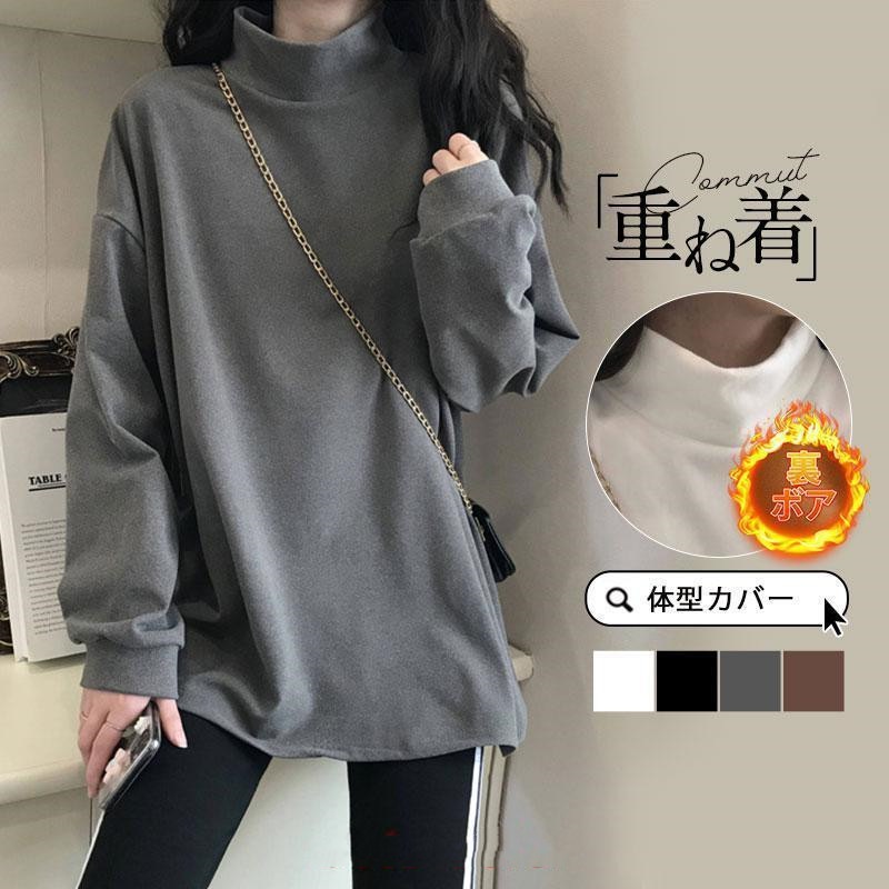 Tシャツ レディース トップス 長袖 裏起毛 裏ボア ハイネック カットソー ティーシャツ 着痩せ カジュアル 体型カバー インナー 重ね着 ルームウェア ブラウス