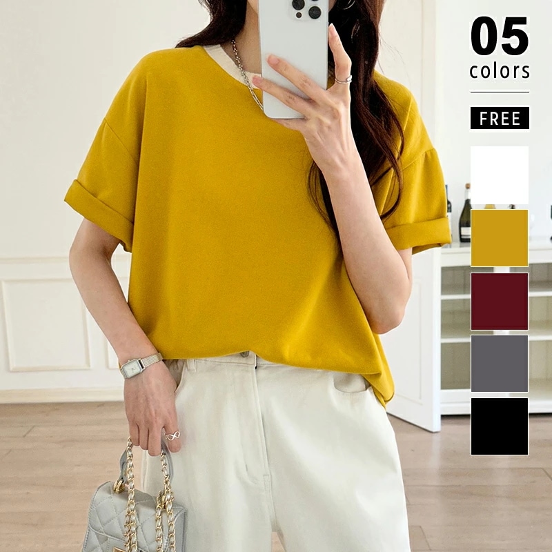 冷感Tシャツ 半袖 レディース フレンチスリーブ クルーネック Tシャツ トップス カットソー 半袖 夏服 ラウンドヘム レディース ブラウス 着回し 韓国ファ