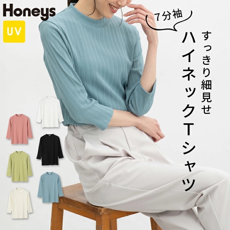 Honeys 7分袖ハイネックTシャツ トップス Tシャツ 7分袖Tシャツ ハイネック カットソーTシャツ Tシャツ カットソー