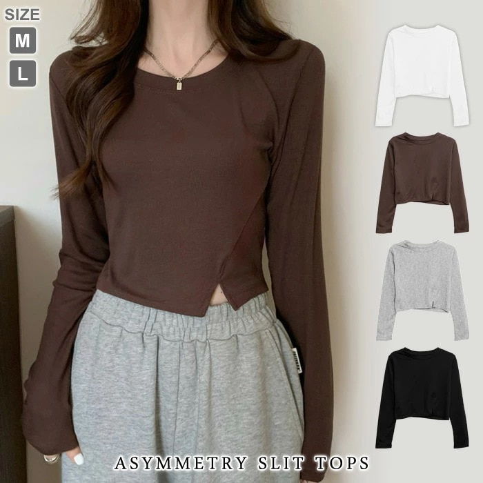 アシメスリット クロップド丈トップス シャツ・カットソー トップス レディース服