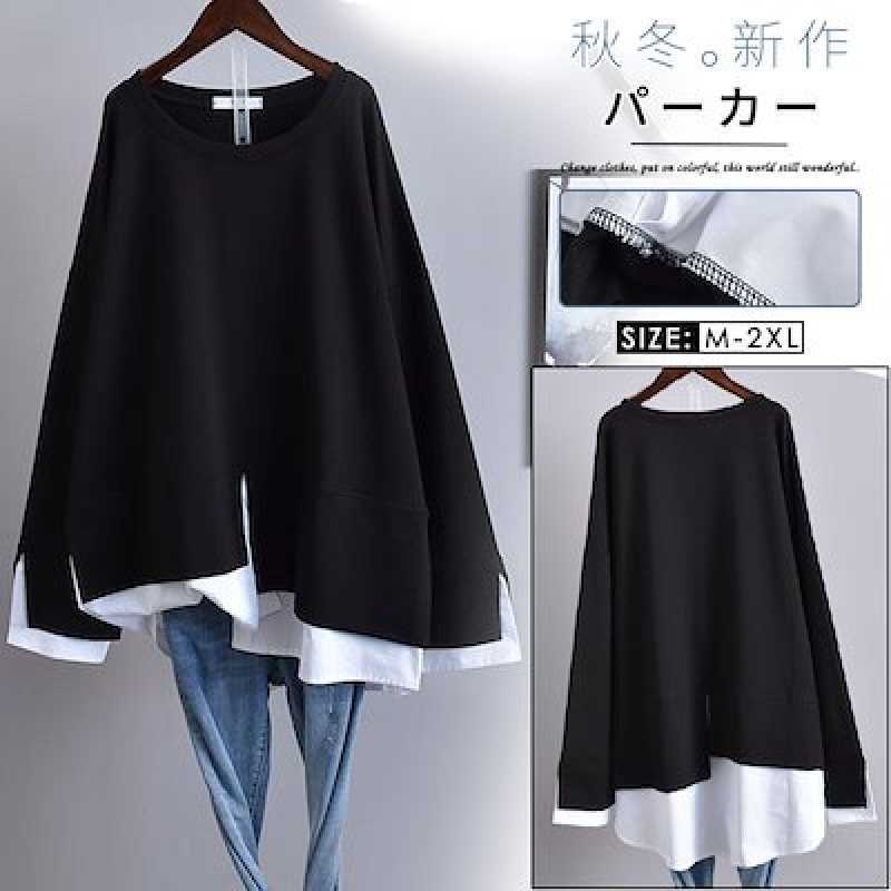 重ね着風トレーナー レディース 長袖 トップス カジュアル スウェット 無地 ゆったり トレーナー きれいめ 可愛い フリーサイズ パーカー カットソー トップス