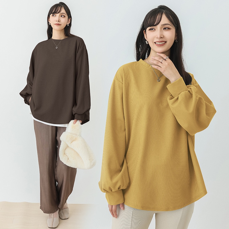 8色 スウェット レディース トレーナー おしゃれ トップス 無地 おしゃれ 長袖 大きいサイズ 韓国 ピンク メンズ ラウンドネックワッフルチェック着やせ