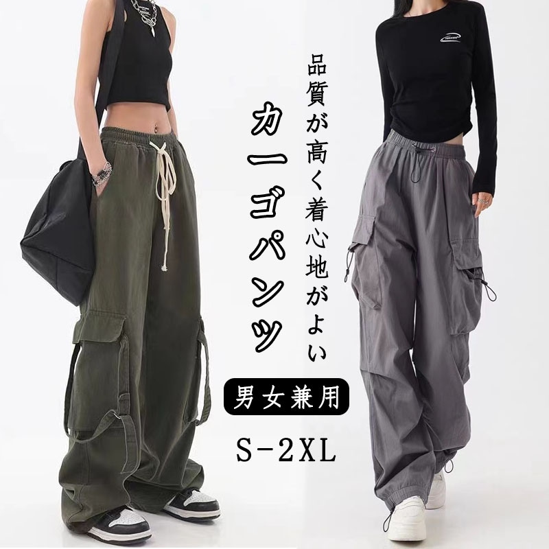 ワイドパンツ カーゴパンツ メンズ レディース ミリタリー 春 夏 秋 カーゴ コットン ガウチョパンツ 無地 ボトムス ポケット 長ズボン 大きいサイズ ウエストゴム 体型カバー 着回し アウトドア