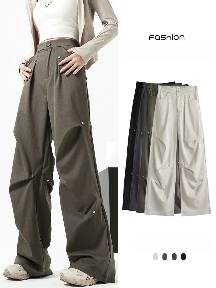 2025春新作 韓国ファッション ロングパンツ レディース カーゴパンツ パンツ ゆったり ワイドルーズズボンボトムス おしゃれ 体型カバー スウェットパンツ ワイドパンツ