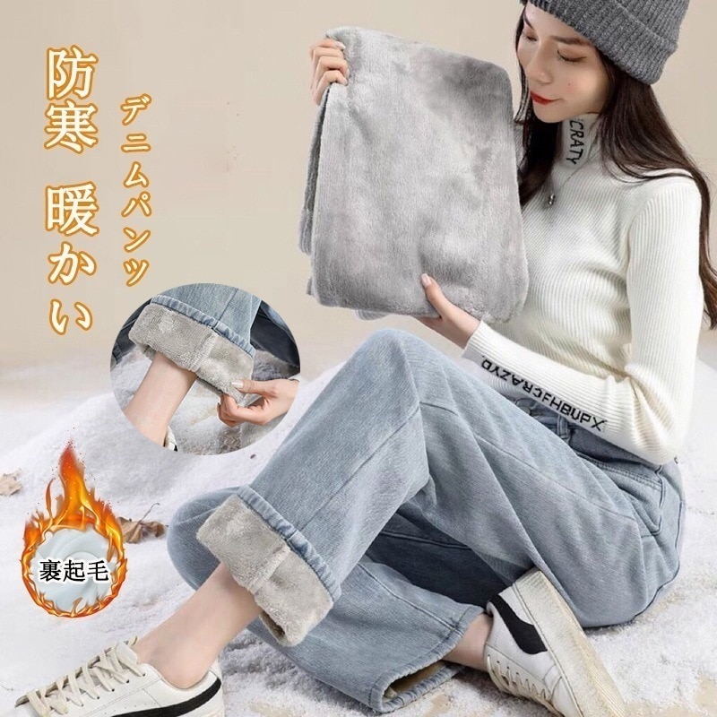 ワイドパンツ新作 おしゃれ ハイウエスト 厚手 裏起毛 デニムパンツ 保温 アウター モップパンツ ワイドパンツ カジュアルパンツ 大きいサイズ スキニーパンツ