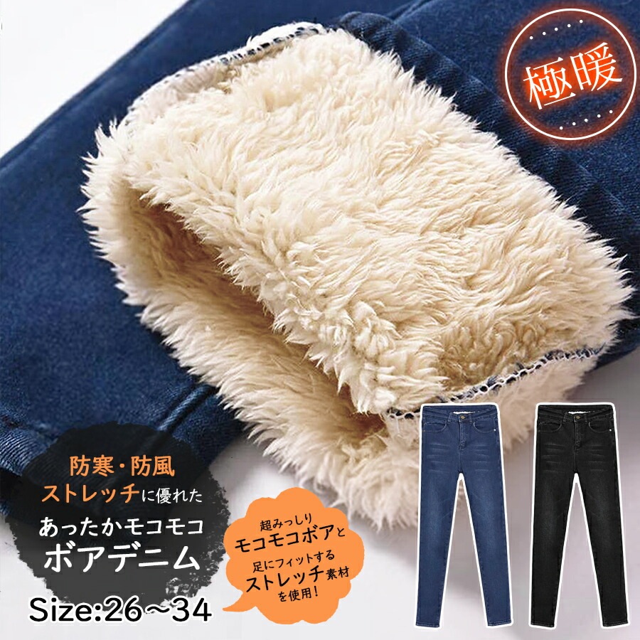 2点購入で600 オフ 極暖 裏ボア デニム パンツ スキニーパンツ タイトパンツ ストレッチ 脚長 あったかい 防風 防寒 レディース ボトムス 裏起毛 スリムフィット ズボン ロング