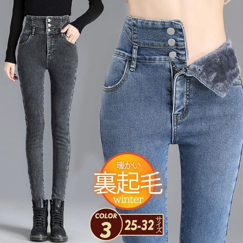 デニムパンツ レディース 裏起毛 パンツ デニム スキニー ボトムス ハイウエスト カジュアル スリム 着痩せ ストレッチ 保温 通勤通学 おしゃれ