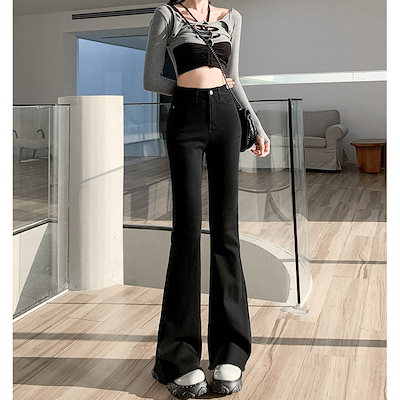 ロングパンツ レディース フレア レギパン デニム 薄手 夏 パンツ レギンス 細身 ストレッチ 脚長効果 フレアパンツ レギンスパンツ