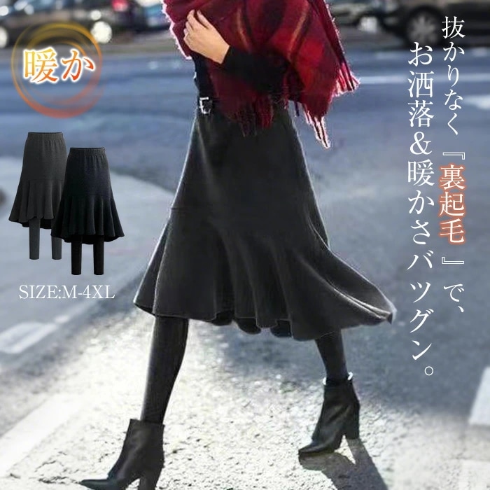 レギンス レディース スカート付レギンス マーメイドスカート シンプル 無地 スカート ウエストゴム 春 秋 冬 フレアスカート マーメイド 裏起毛 防寒 ストレッチ カジュアル レイヤード フェミニ