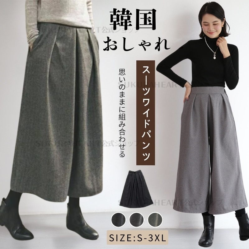 新品 ガウチョパンツ 春服 フレアパンツ スカーチョ 春秋冬 ワイドパンツ レディース キュロットパンツ タック スカンツ ウール 防寒 保温 イージーパンツ 大きいサイズ 韓ファッション