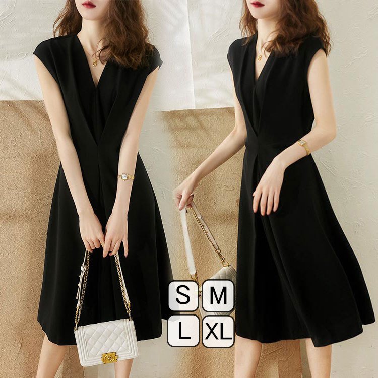 ワンピース レディース 春夏 40代 きれいめ マキシワンピース 半袖ワンピース 黒 vネック Aラインスカート オシャレ 大人 ゆったり 通勤 OL 韓国風 30代 50代