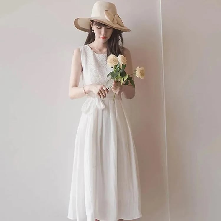 夏ロング丈刺繍レディースリゾートワンピースノースリーブ細身レースワンピースきれいめフォーマルAラインワンピース白ワンピースボヘミア風海シフォンビーチゆったり