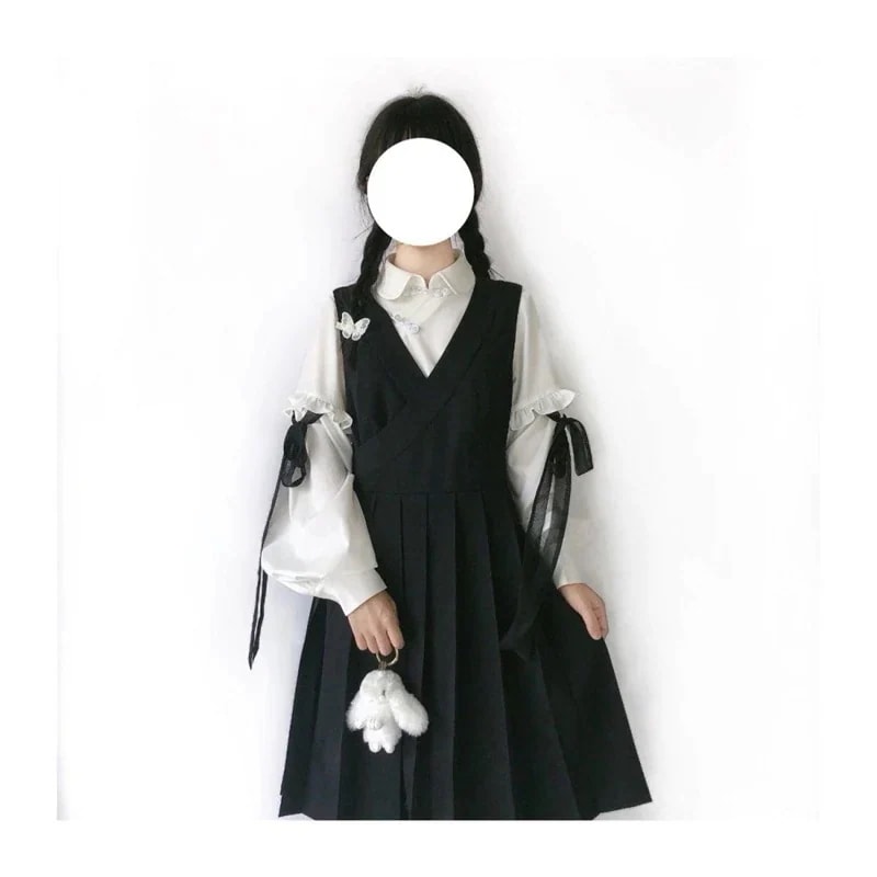 かわいい 地雷系 長袖シャツ&コルセットワンピース 2点セット 量産 地雷 女子高生 学生服 女子879 ジャンパースカート