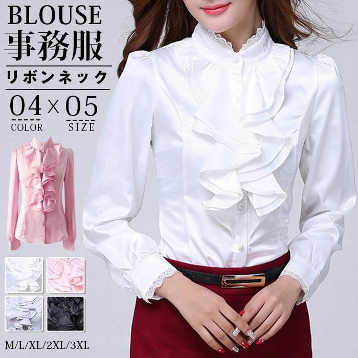ブラウス レディース リボンネック フリル 長袖 大人 シンプル カジュアル トッ 無地 春 夏 秋 シャツ きれいめ シャツ ブラウス