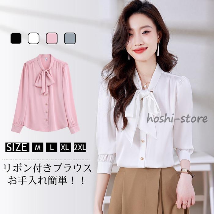 シャツ ブラウス レディース リボン トップス フリルブラウス 長袖 無地 エレガント オフィス 落ち感 魅力 お洒落 プルオーバー シャツ ブラウス