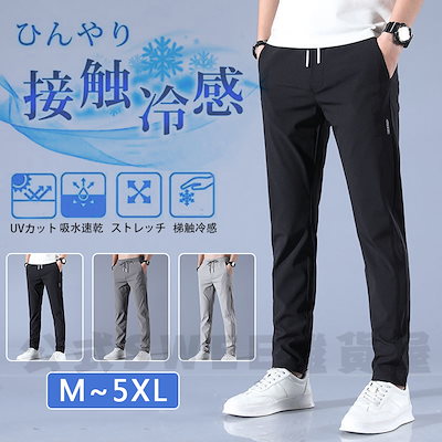 ストレッチ感UP メンズ パンツ 接触冷感 大きいサイズ 夏 涼しい ズボン ゴルフパンツ ゴルフウェア アイスシルクパンツ ロングパンツ スポーツパンツ 軽量 薄手 通気