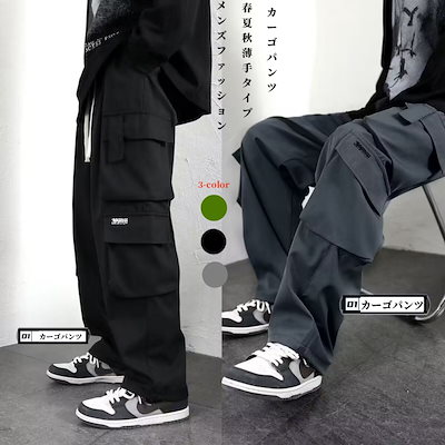 カーゴパンツメンズファッション夏の薄手ゆったり束ね足カジュアル男突撃ズボン男ワイドパンツ