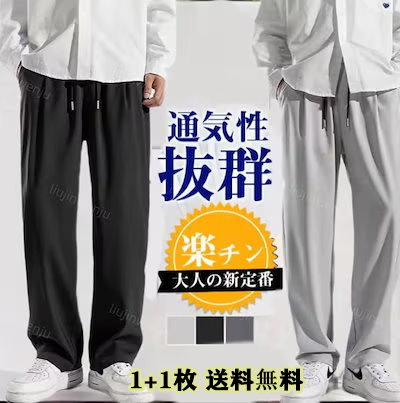 1+1枚 送料無料 ロングパンツ パンツ メンズファッション