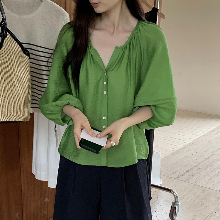 春夏トップス レディース コットン 二の腕カバー シャツ すっきり魅せシルエット 着心地も 通勤スタイルにもOK 七分袖 パフスリーブ プルオーバー