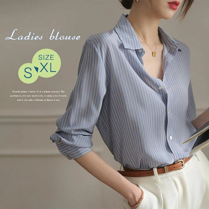 シャツ レディース ストライプ シフォン ブラウス 長袖 シャツ とろみブラウス スーツ インナー とろみシャツ オフィス ビジネス 事務服 制服 リクルート 着痩せ 着回し 通勤 OL おしゃれ ゆ