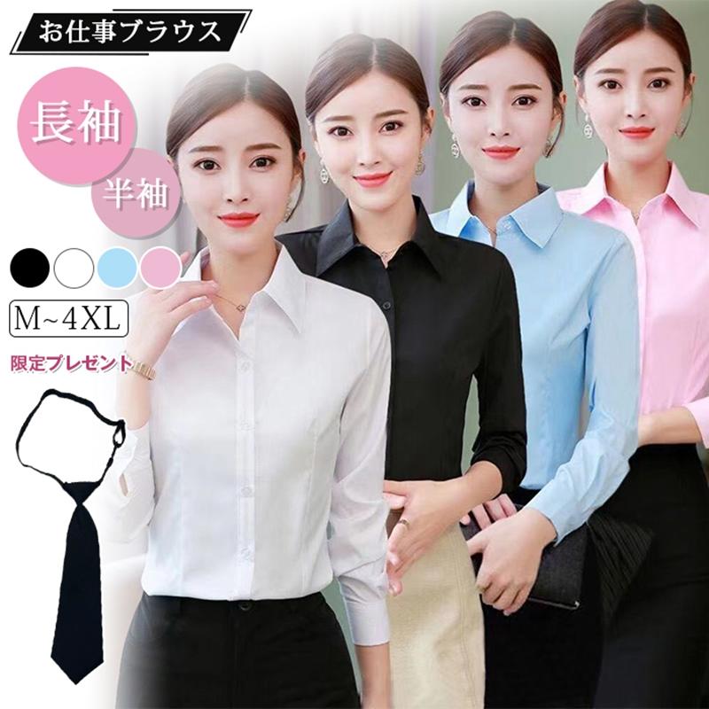 ネクタイをプレゼント レディースブラウス シャツ インナー ノーアイロン 長袖 半袖 春 ビジネス オフィス しわになりにくい Yシャツ フォーマル スーツ