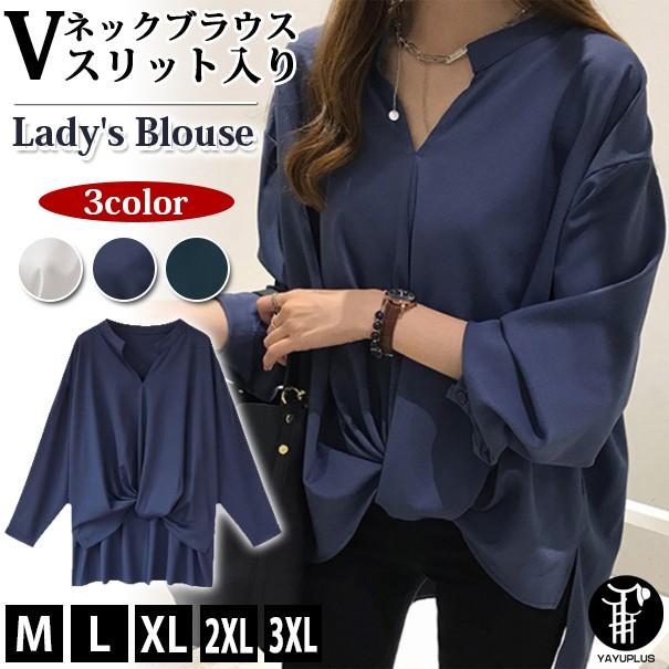 ブラウス レディース シャツ スリット トップス シンプル きれいめ Vネック 長袖シャツ オフィス カジュアル シャツ ブラウス