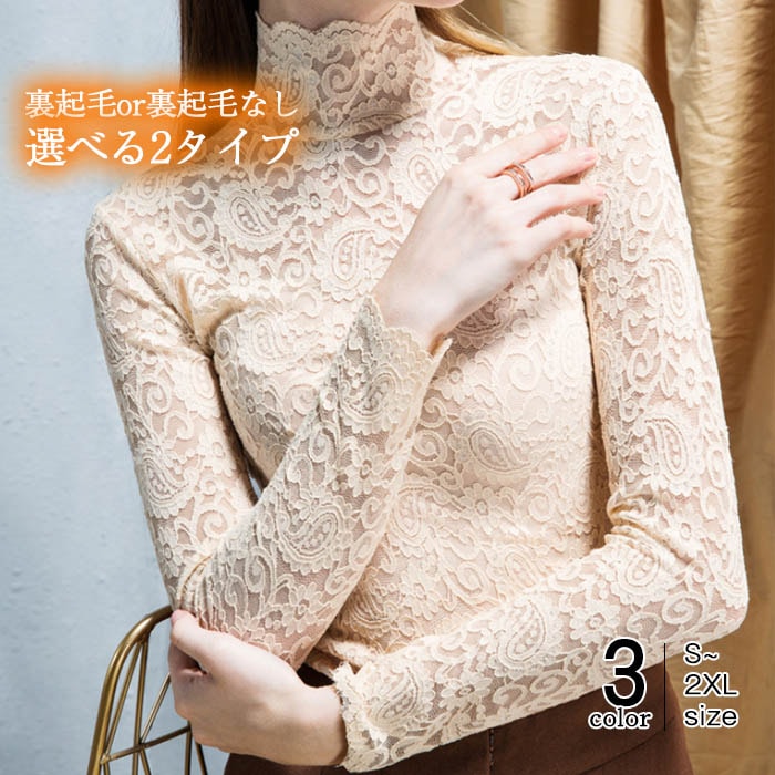 タイト トップス レース カットソー レディース ハイネック 長袖tシャツ スーツインナー プルオーバー タートルネック tシャツ 長袖 2タイプ 裏起毛 ブラック ホワイト 春 秋 冬 透け感 セク