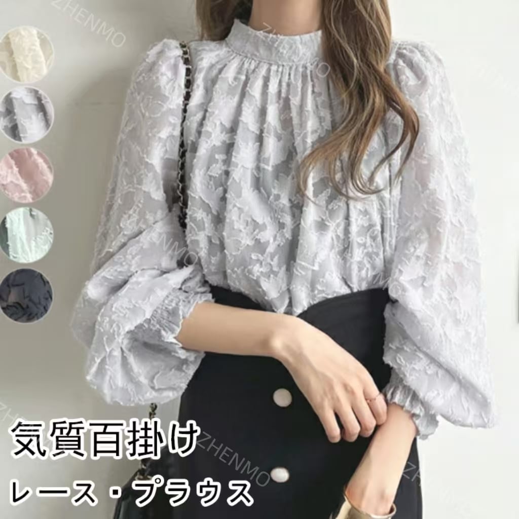 ブラウス レディース ブラウス オフィスブラウス 長袖 白レース透かし彫り オシャレブラウストップス 韓国風 大人 通勤OL ゆったりシャツインナー