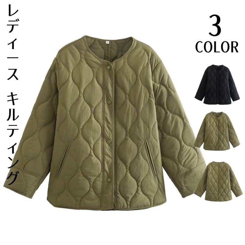 キルティング ジャケット レディース 長袖 大きいサイズ コート 前開き クリスマス プレゼント アウター 秋冬 ノーカラージャケット