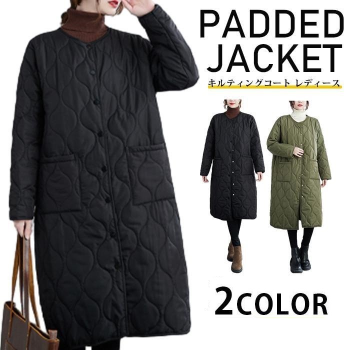 キルティングジャケットキルティングコートノーカラーコートレディースアウターロングコート中綿秋冬キルティング防寒軽量ジャケット中綿コート防寒コートノーカラー